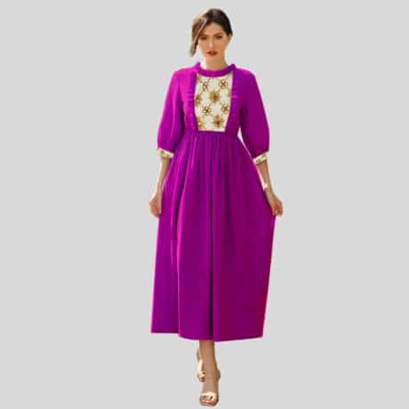 Beautiful Purple with Sliver, Bow at Waist Dress-RKFCW040
