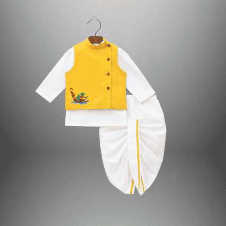 Boy’s traditional Dhoti kurta with yellow waistcoat-RKFCW441