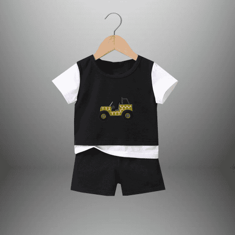 Boy’s 3 piece set of Beige shorts, waistcoat and Black T- Shirt-RKFCW536