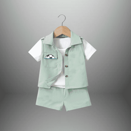 Boy’s 3 Piece set of Ice Blue sleeveless jacket, shorts and White T-shirt-RKFCW537