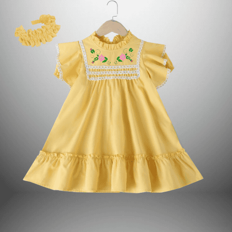Girl’s peach colour casual dress with a free hairband – RKFCW572