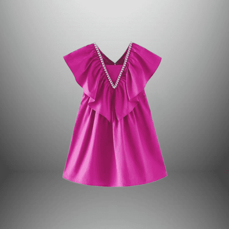 Girl’s frilled dress with neckline lace design-RKFCW509