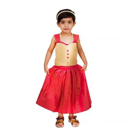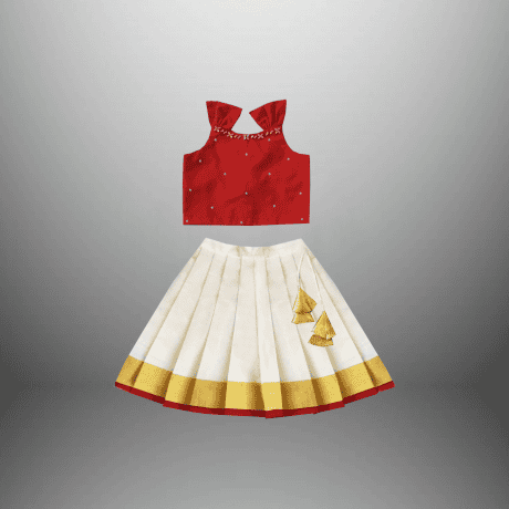 Girl’s long skirt and pretty red blouse for festive look-RKFCW569