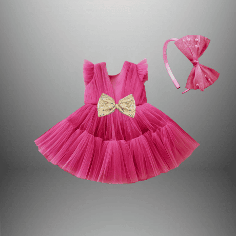 Girl’s Pretty pink Party dress with silver Glitter bow-RKFCW519