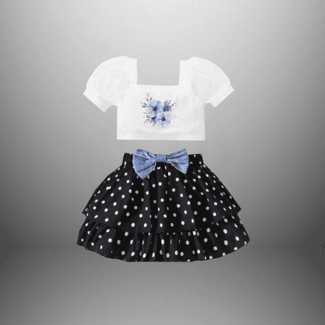 Girl’s 2 piece set of white top with cute polka dot skirt – RKFCW574