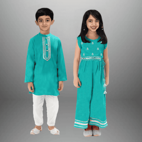 Kids combo of caribbean Green Girl’s Jumpsuit and kurta with Pajama for Boys -RKCS013
