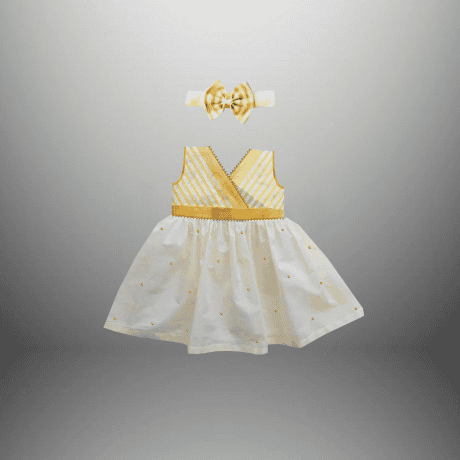 Toddler’s off white and gold toned pretty dress with free hairband-RKFCTT123