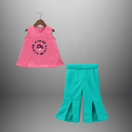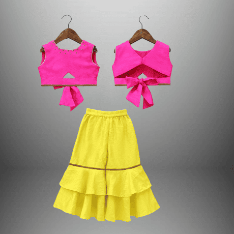 Girl’s indo western 2 piece set of neon yellow palazzo and sleeveless pink top-RKFCW496