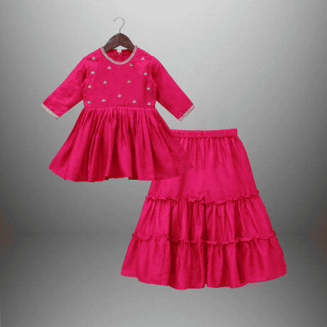 Girl’s 2 piece set of Pink Flared Kurti and Sharara pant-RKFCW531