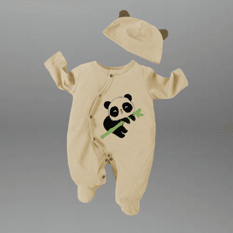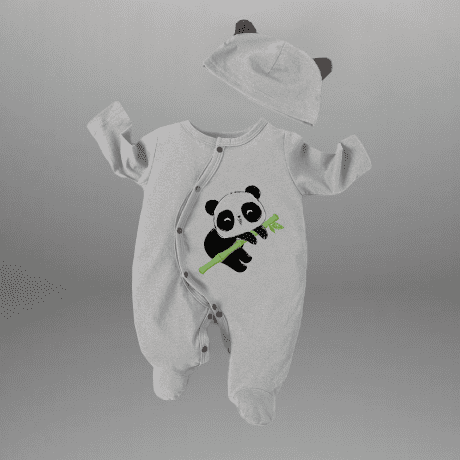 Toddler’s Grey Romper with cute lazy panda motif and a free cap-RKFCTT104