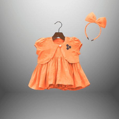 Toddler’s Peach flared dress with a waistcoat and a free hairband-RKFCTT113