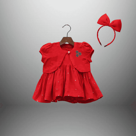 Toddler’s Red flared dress with a waistcoat and a free hairband-RKFCTT112
