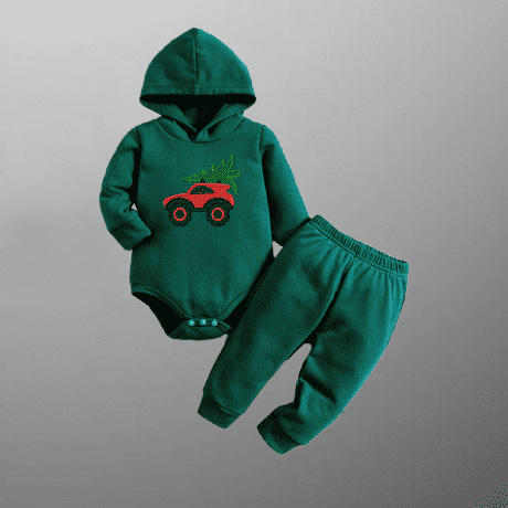 Toddler’s Teal Green Hooded Romper and Bottom-RKFCTT101