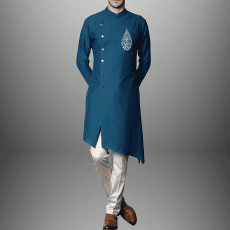 Men’s Cerulean Blue Plain kurta with buttons-RMEK024