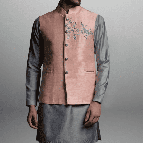 Men’s Peach Pink waistcoat with embroidery-RMWC006