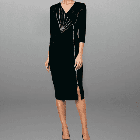 Women’s Black 3/4th sleeve dress with front slit and kundan work-RED070