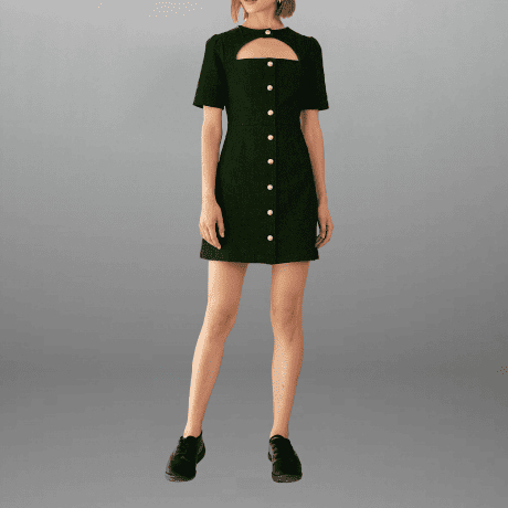 Women’s Cotton Button Embellished Mini Dress-RCD035