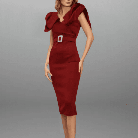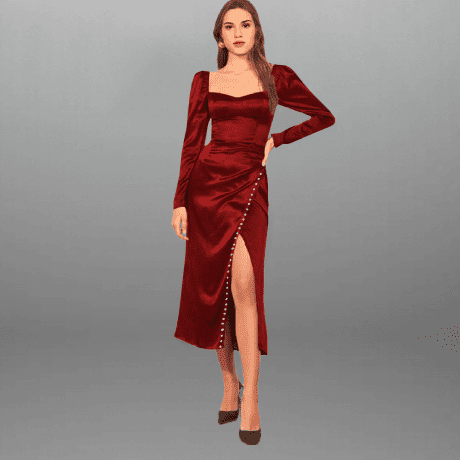 Women’s Red Satin Full sleeve Overlapped dress with Pearl Embellishment-RED066