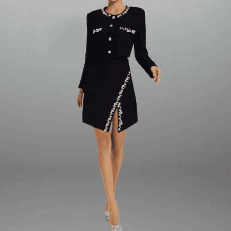 Women’s Black two piece set of Skirt & Top with hand work-RTPS001