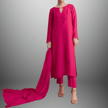 Women’s Fuchsia Pink kurti with Pant and Dupatta-RWKS075