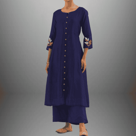 Women’s Cotton silk Blue kurti set with embroidery on sleeve-RWKS015