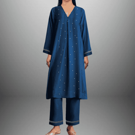 Women’s Blue colored sequince & lace embellished Kurti with pant -RWKS090