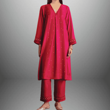 Women’s Pretty Pink sequince & lace embellished Kurti with pant -RWKS089