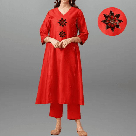 Women’s Tomato Red Kurti set with Embroidery work-RWKS088
