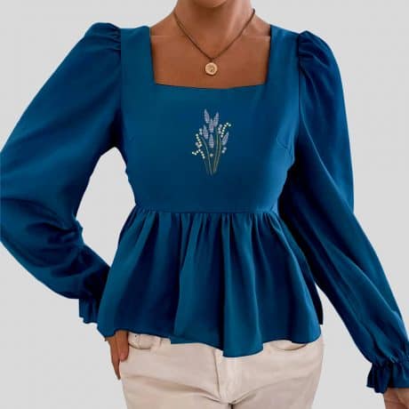 Blue Bell Sleeve Ruffle Hem Peplum Top-RCT107