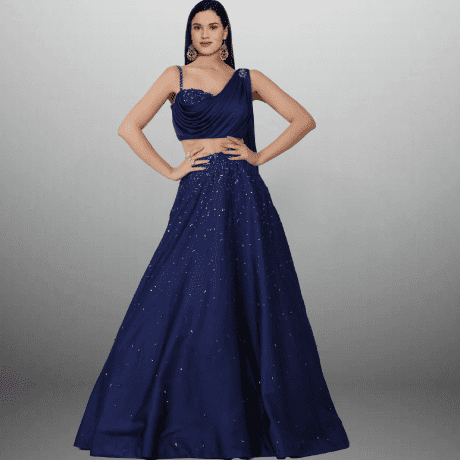 Designer Embellished Royal Blue Lehenga with drapped Dupatta-RFL007