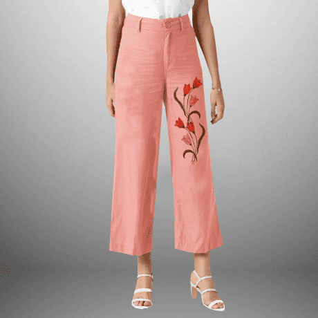 Women’s peach pink casual pant with floral motif-RCP028