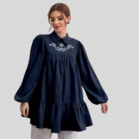 Black Keyhole Back Lantern Sleeve Ruffle Hem Top-RCT101