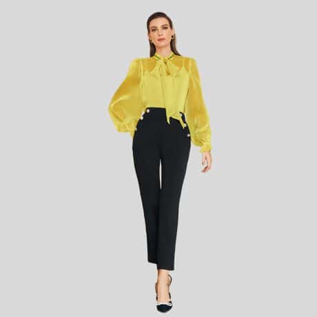 Yellow Pearls Bow Front Flounce Sleeve Blouse Without Cami Top-RET085B