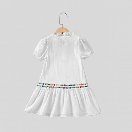 Girls white frill collar dress with puff sleeves – RKFCW286