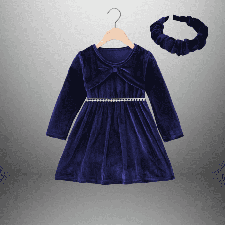 Girl’s Blue Velvet Full Sleeve dress-RKFCW512