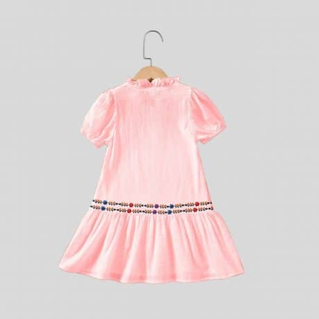Girls pink frill collar dress with puff sleeves – RKFCW285