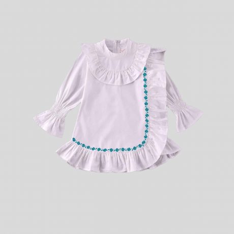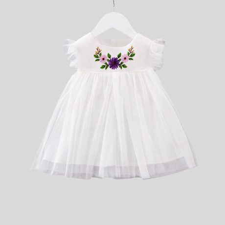 Girls party wear white net frill dress and frilled sleeves and floral print at neck-RKFCW129