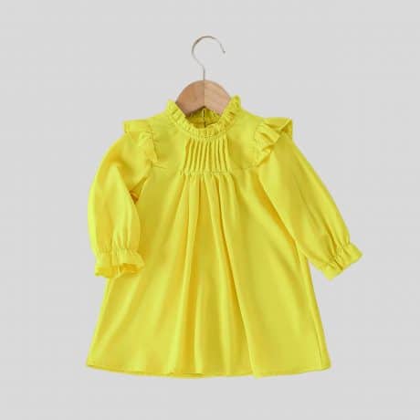 Girls yellow full sleeves frill collar and tiny pleated yoke-RKFCW229