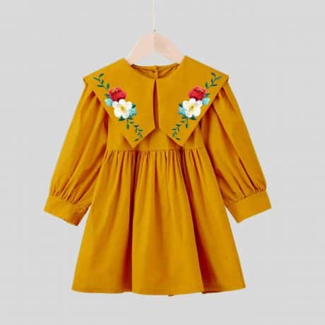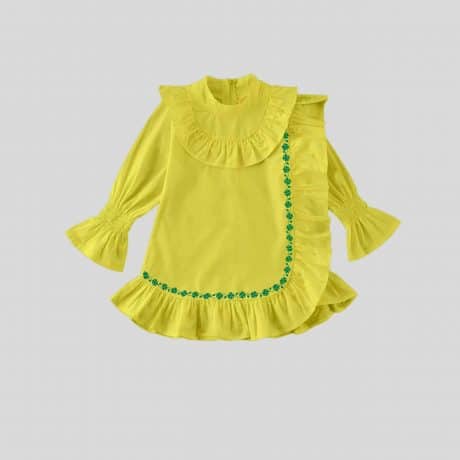 Girls yellow full sleeves pointed cape collars with pretty floral print-RKFCW224