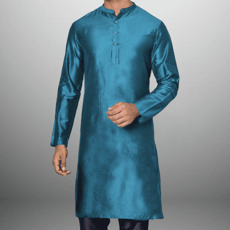 Men’s Cerulean Blue Plain kurta with buttons-RMEK024