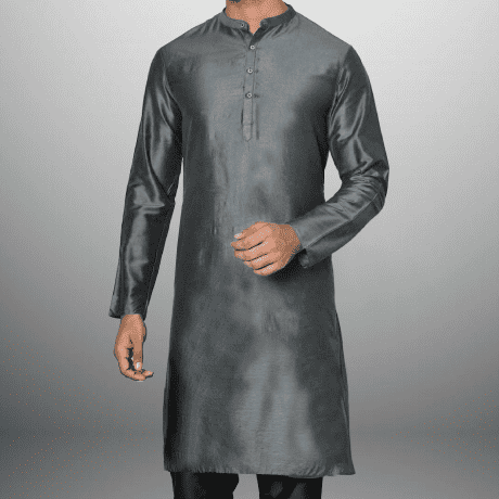 Men’s Steel Gray Plain kurta with buttons-RMEK025