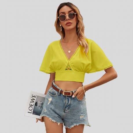 Bold Yellow Cut Out Backless Tie Back Crop Top-RCT038