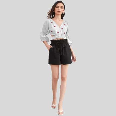 Black Crop Cami Top & Paper Bag Waist Shorts-RCB005