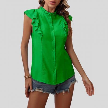 Green Butterfly Sleeve Frill Neck Blouse-RCT083