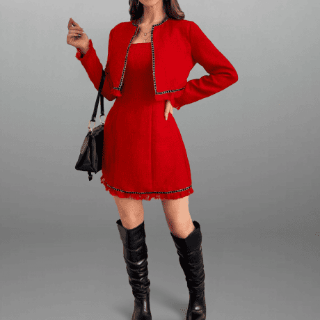 Women’s Red Mini Dress and a Jacket-RCD036