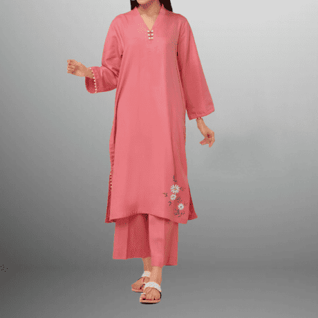 Women’s Peach kurti with pearl embellishment and Floral motif with pant-RWKS072