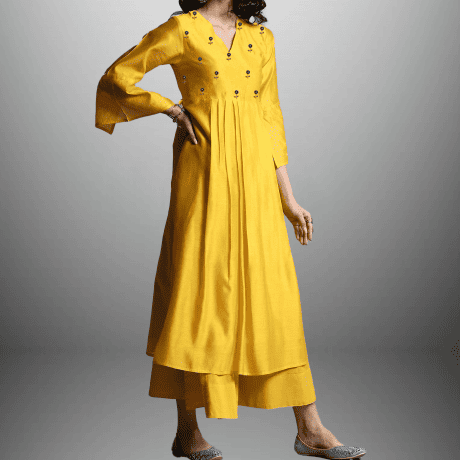Women’s Sunshine Yellow bell sleeve kurti with pant-RWKS054