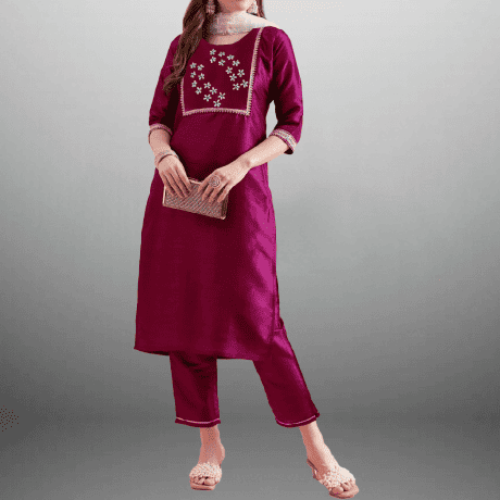 Women’s Hot pink Kurti with pant and Dupatta-RWKS059