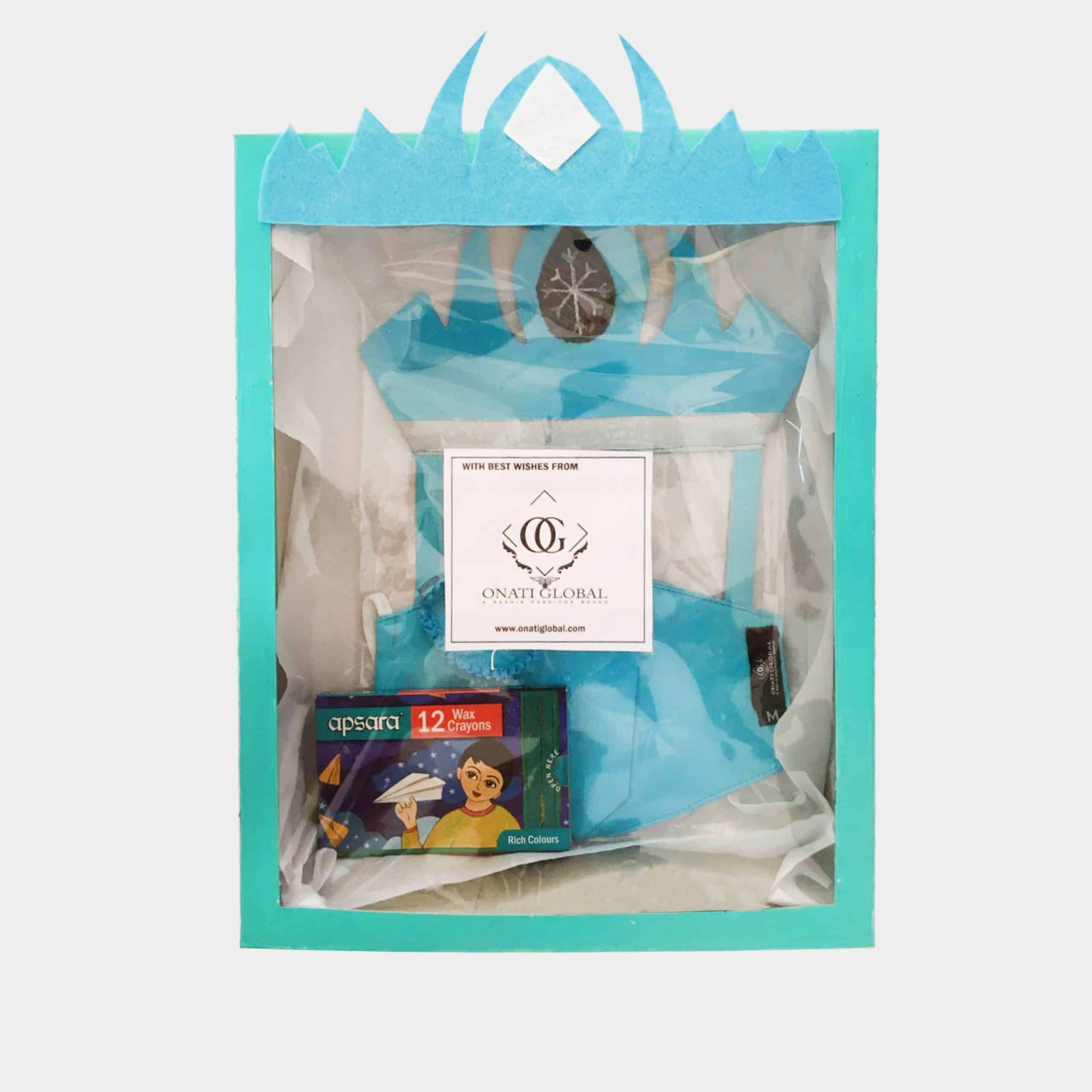 A perfect gift for your bundle of joy. Present it to the birthday girl. Beautifully packed, this bundle includes one eye shield and face mask, hand-painted with the Frozen theme, a friendship band, and colorful crayons.