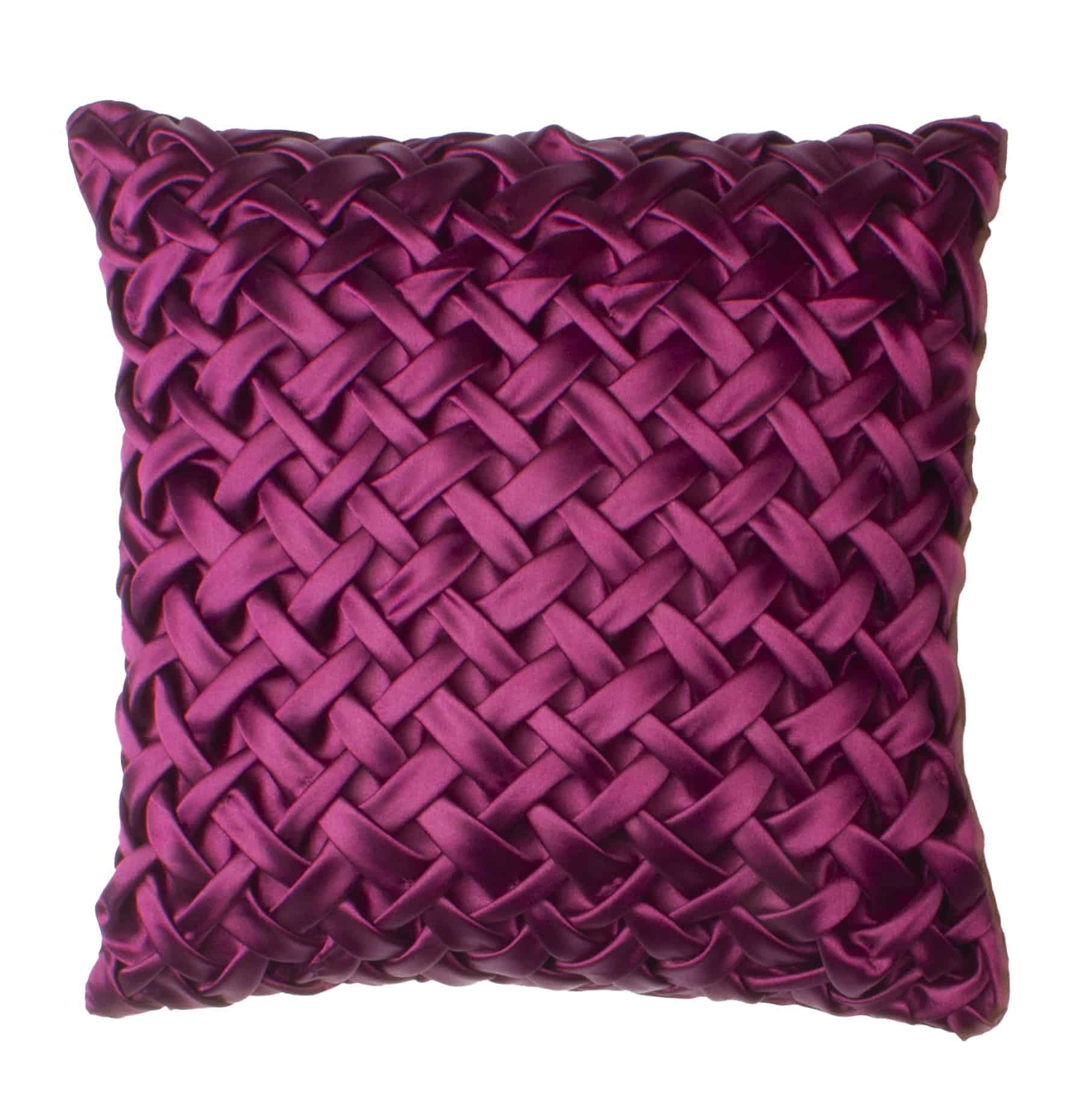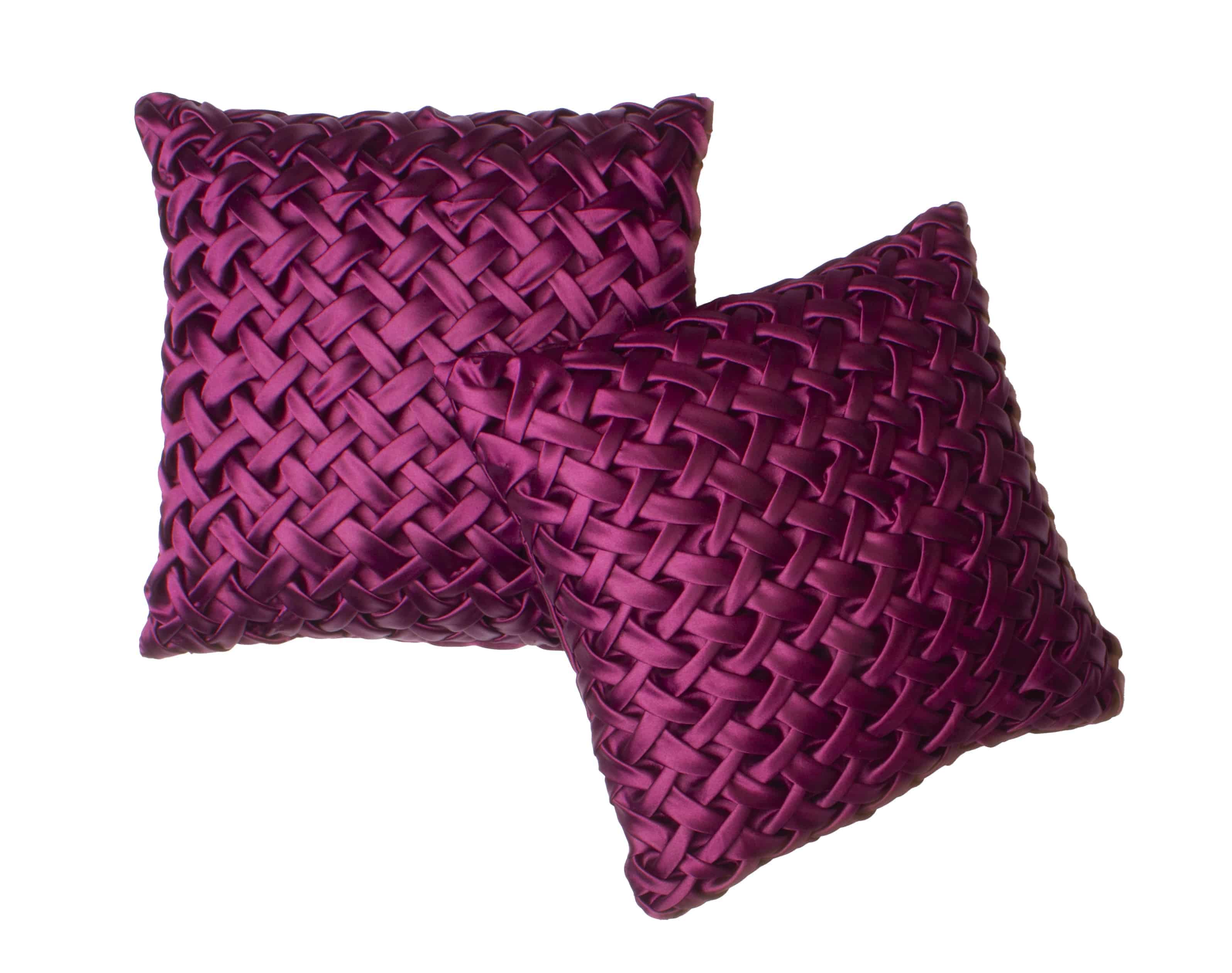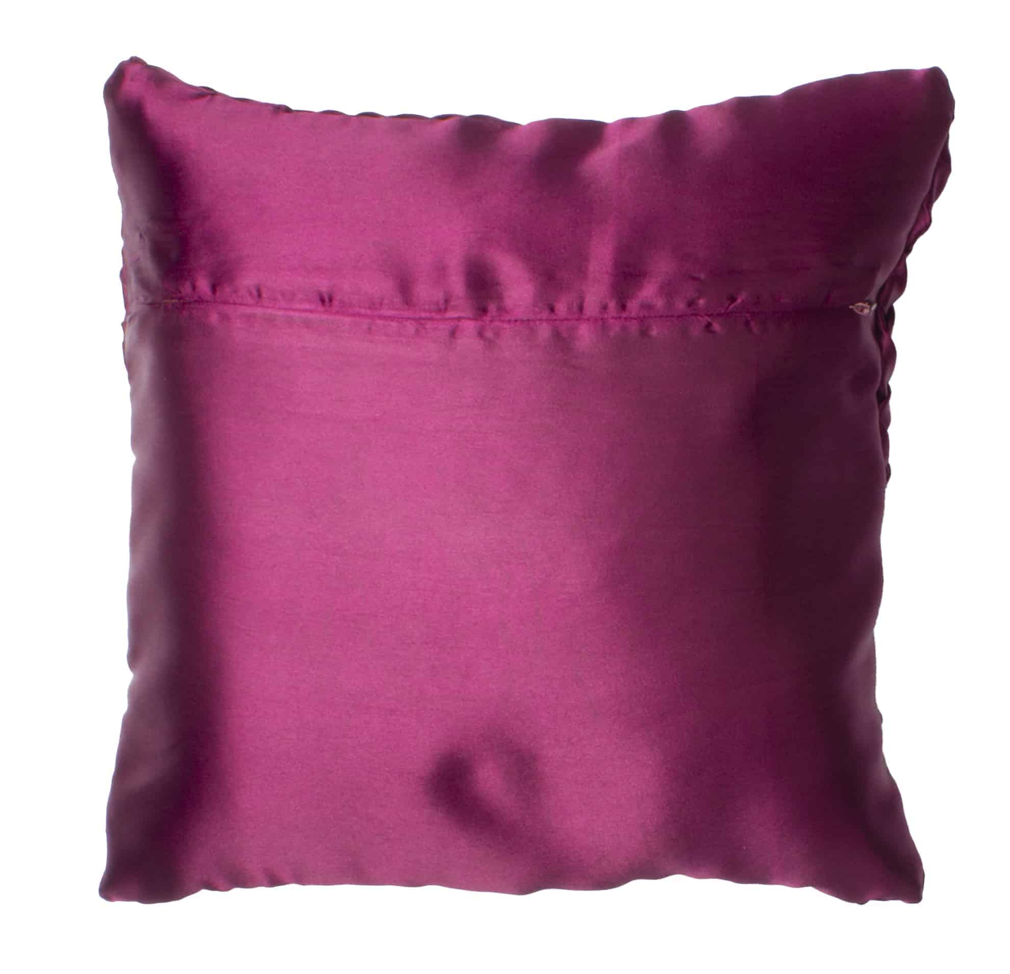 Hand made mulberry colored pair of satin cushion covers with hand made smocking details.